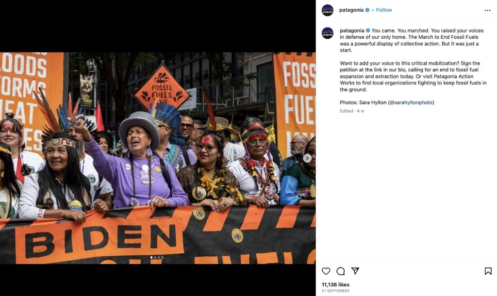 Here, Patagonia is telling you they care about what you care about and inviting you to interact with their bio where you can find the petition they reference. This is a great example of advertising that was used to take social action, something Patagonia’s customers are always concerned about.