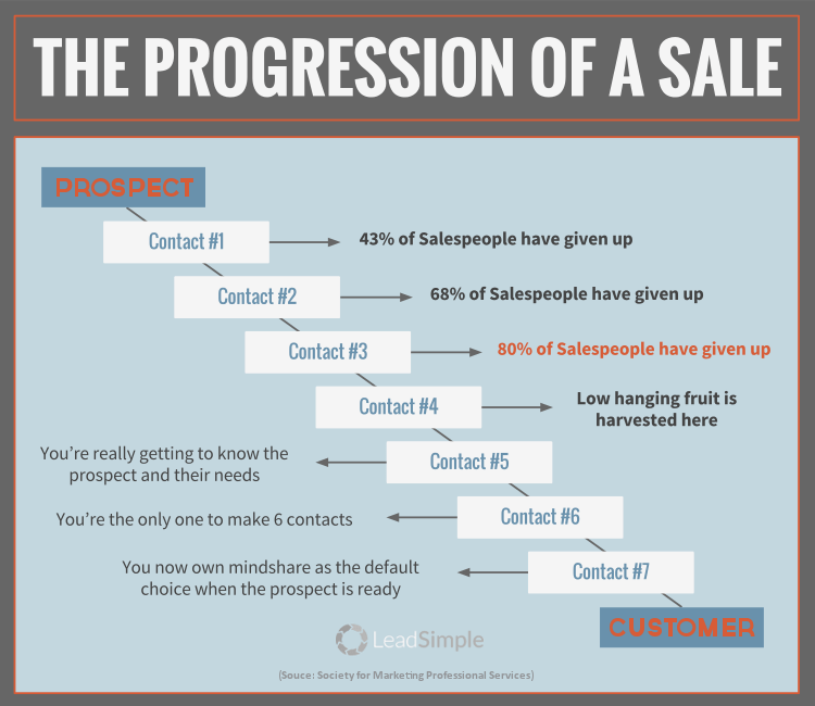 By this chart, it takes seven contacts to take a person from being a prospect to a customer. No matter how you choose to look at it, that’s a relationship.